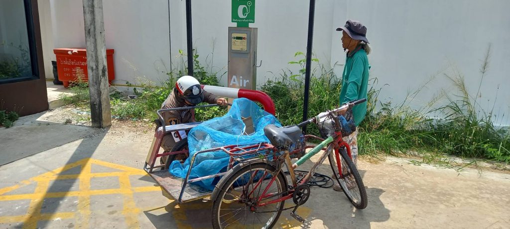 ต.บ้านใหม่หนองไทร อ.อรัญประเทศ จ.สระแก้ว พบสตรีสูงอายุซึ่งได้ขับขี่รถจักรยานพ่วงข้างมาบริเวณดังกล่าว เกิดยางแบนขอความช่วยเหลือให้ช่วยเติมลมยาง ดำเนินการช่วยเหลือเรียบร้อย