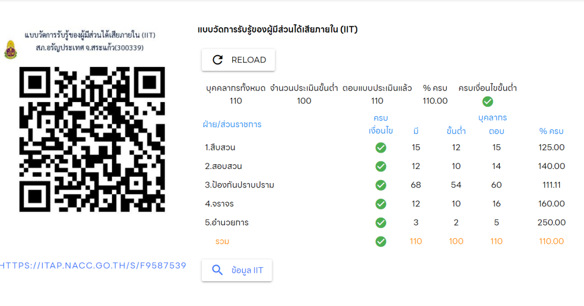 ดำเนินการแบบวัดการรับรู้ของผู้มีส่วนได้เสียภายใน (IIT) เรียบร้อย