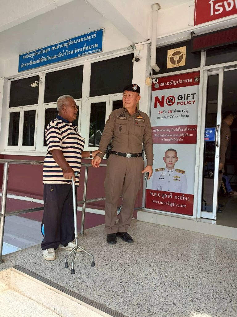 2 พฤษภาคม 2568 เวลา 08.00 น. พ.ต.ท.ณธรรศ วงศ์อาษา สวป.สภ.อรัญประเทศ หลังจากนำแถวข้าราชการตำรวจเคารพธงชาติเสร็จแล้ว พบประชาชนสูงอายุกำลังจะขึ้นบนสถานีตำรวจเพื่อเข้าใชับริการลงบันทึกประจำวันเอกสารหาย จึงเข้าอำนวยความสะดวกแก่คุณลุง ขึ้นบนสถานีตำรวจเพื่อรับบริการ คุณลุงกล่าวขอบคุณ พ.ต.ท.ณธรรศ และชื่นชมการปฏิบัติหน้าที่ บริการด้วยรอยยิ้ม เป็นตัวอย่างที่ดีแก่ผู้ใต้บังคับบัญชา