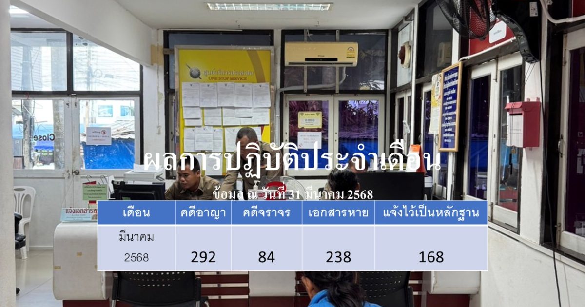 ผลการปฏิบัติงานสายงานสอบสวน ประจำเดือนมีนาคม 2568