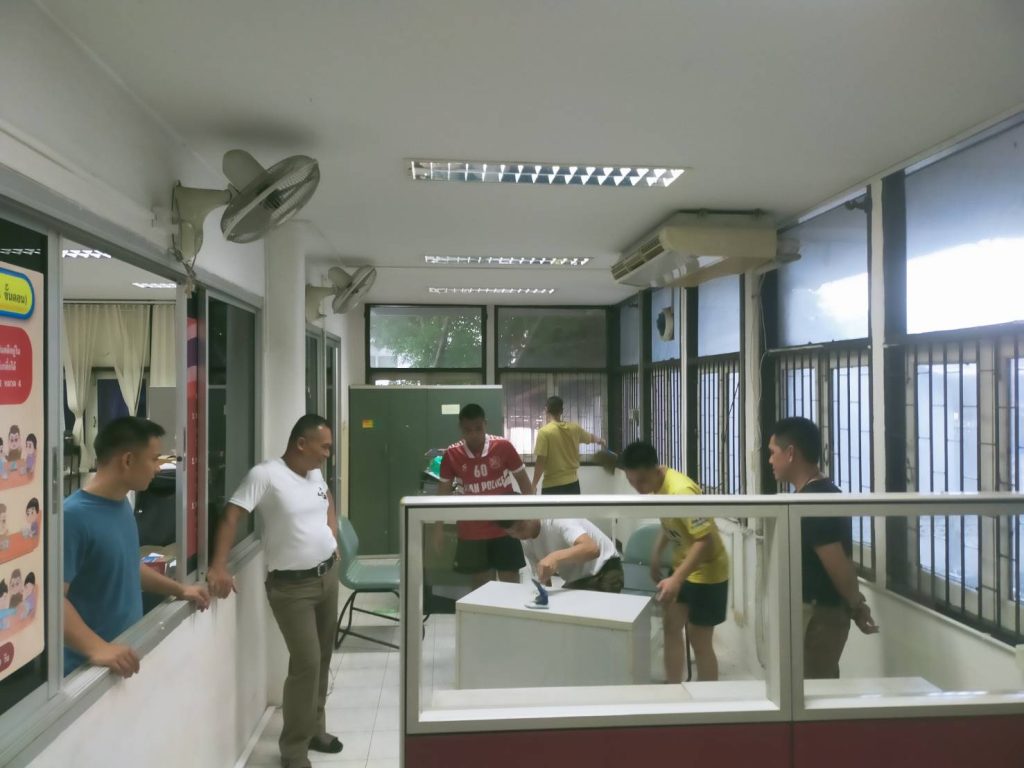 ร่วมกันทำความสะอาด จัดโต๊ะทำงาน ห้องงานสอบสวน เพื่อความเป็นระเบียบเรียบร้อยในการบริการประชาชนต่อไป
