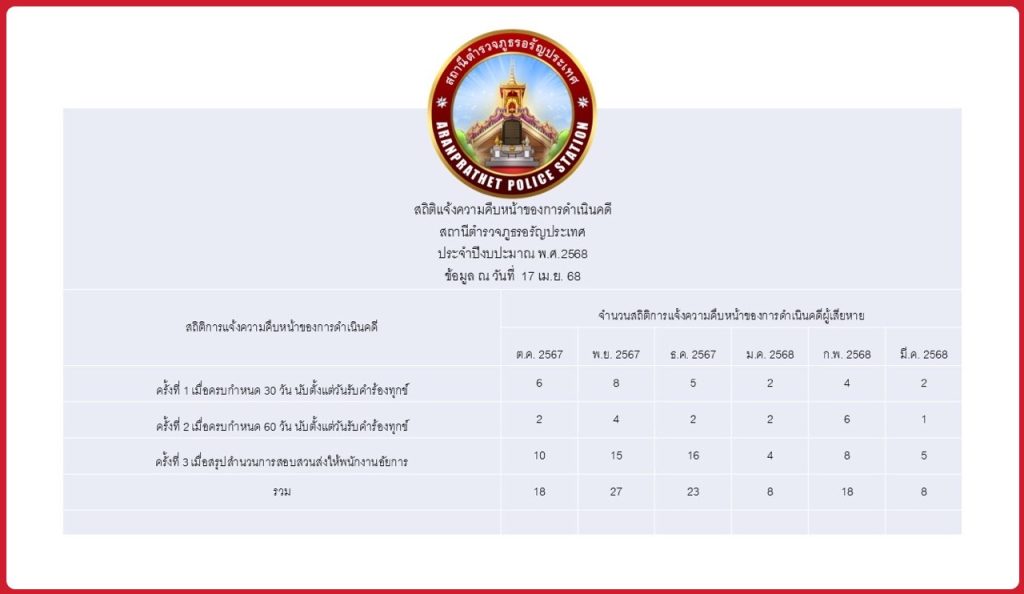 สถิติการแจ้งความคืบหน้าของการดำเนินคดี